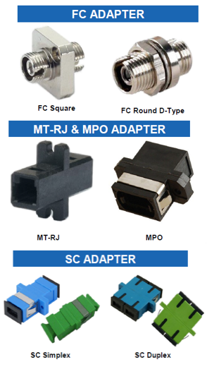 Optical Fiber Adapter is used to mate two connectors, usually mounted in a distribution panel or wall mount box. It is a precision components made from zirconia ceramic to ensure the perfect alignment of connectors and reduced insertion loss for both SM and MM fibers. In most cases, the split sleeve is the critical part of the system that aligns the ferrule part of the connector, keeping the fibers in perfect alignment.